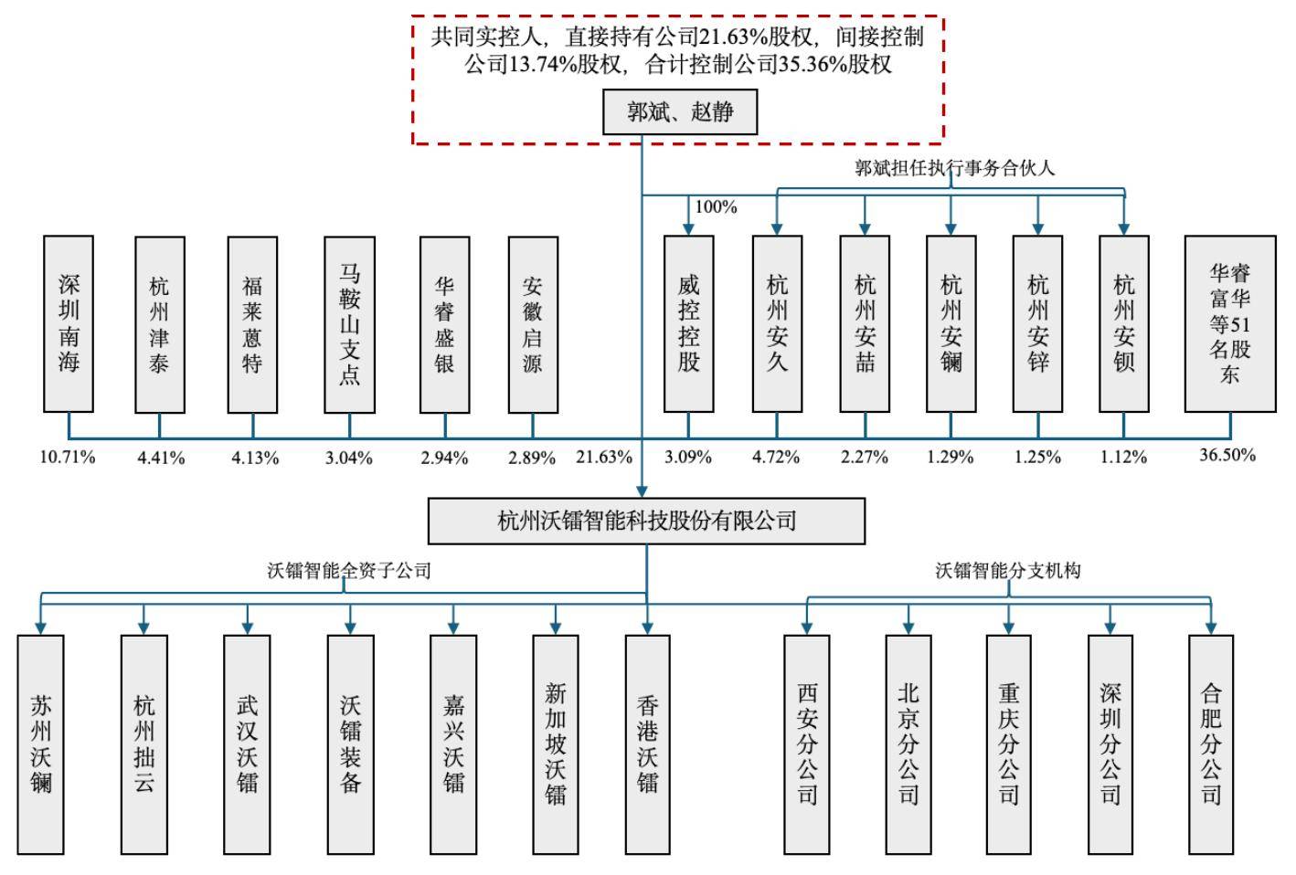 安徽启源持股为2.17%,甘奋怯持股为0.69%,间接及间接节制公司32.79%股份(此中间接持股19.05%)。任工程师;红土智行、周颖别离持股为0.71%;平潭灏煜持股为0.53%,郭斌间接持股并节制的合股企业杭州安镧、杭州安锌及杭州安钡别离持有沃镭智能197.88万股、191.78 万股及 172.34 万股,